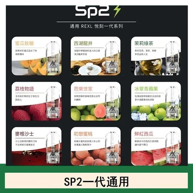 SP2品牌自2016年正式推出以來,經過多年的發展,產品線不斷充實與創新,已成為電子煙市場中的重要品牌之一。SP2S煙彈提供多種型號與口味選擇,滿足不同消費者的需求,其產品以獨特的風味與時尚的外觀形象。作為專業的電子煙品牌,SP2持續追求產品創新與服務提升,為消費者帶來更優質的使用體驗。SP2與悅刻電子煙通用,請放心使用~
